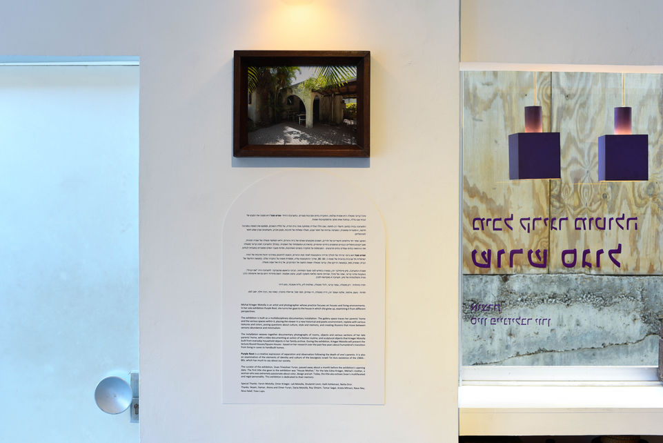 מיכל קריגר מוטולה היא אמנית וצלמת, החוקרת בתים וסביבות מגורים. בתערוכת היחיד שורש סגול היא מפנה את המבט אל הבית שבו גדלה, ובוחנת אותו מתוך פרספקטיבות שונות. התערוכה בנויה כמיצב תיעודי רב-תחומי, שבו חלל הגלריה מתחקה אחר בית הוריה, על חלליו השונים, וממקם את הצופה בסביבה חדשה, היסטורית ופואטית, המציפה עדויות של חומר וצבע, מעלה שאלות של תרבות, סגנון וזכרון, ותעתועים שבין שפע חושי למינימליזם. המיצב שוזר יחד צילומים תיעודיים של חדרים, חפצים ומקטעים שונים של בית ההורים, וידאו המתעד פעולה של שגרה חגיגית, ואובייקטים פיסוליים הבנויים מחפצים ביתיים יומיומיים, מהארכיון המשפחתי של האמנית. במהלך התערוכה תציג קריגר מוטולה את ההרצאה בתים עגולים בתים מרובעים - המבוססת על מחקרה בשנים האחרונות, אודות מעבר האדם ממגורים במערות לבתים. שורש סגול הוא ביטוי יצירתי של תהליך פרידה והתבוננות לאחר מות ההורים, והצעה להתבונן במרכיבי זהות ותרבות של הוויה ישראלית תל אביבית בורגנית של שנות ה -60 -80, שדרך ההתבוננות עליה, מספרת משהו על החברה שלנו. במעשה התיעוד של הבית, שפורק מאז, ובמעשה הריקון שלו, קריגר מוטולה יוצאת החוצה אל המרחבים, אל בית ואל שפה משלה.